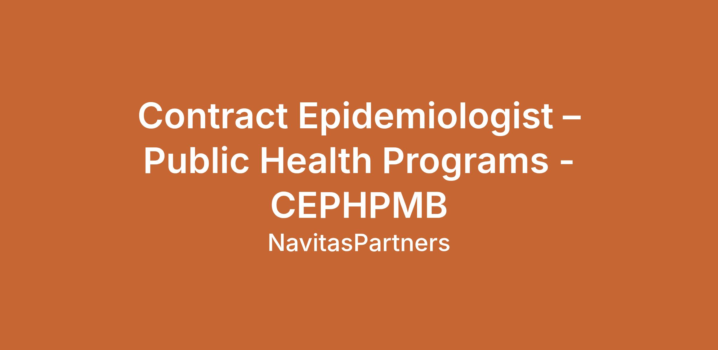 Contract Epidemiologist – Public Health Programs
