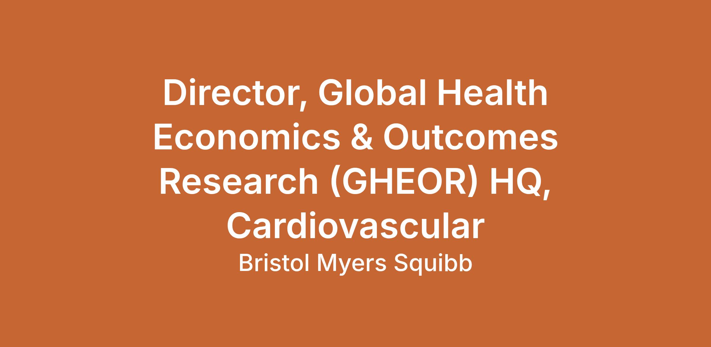 R1597932 : Director, Global Health Economics & Outcomes Research (GHEOR) HQ, Cardiovascular