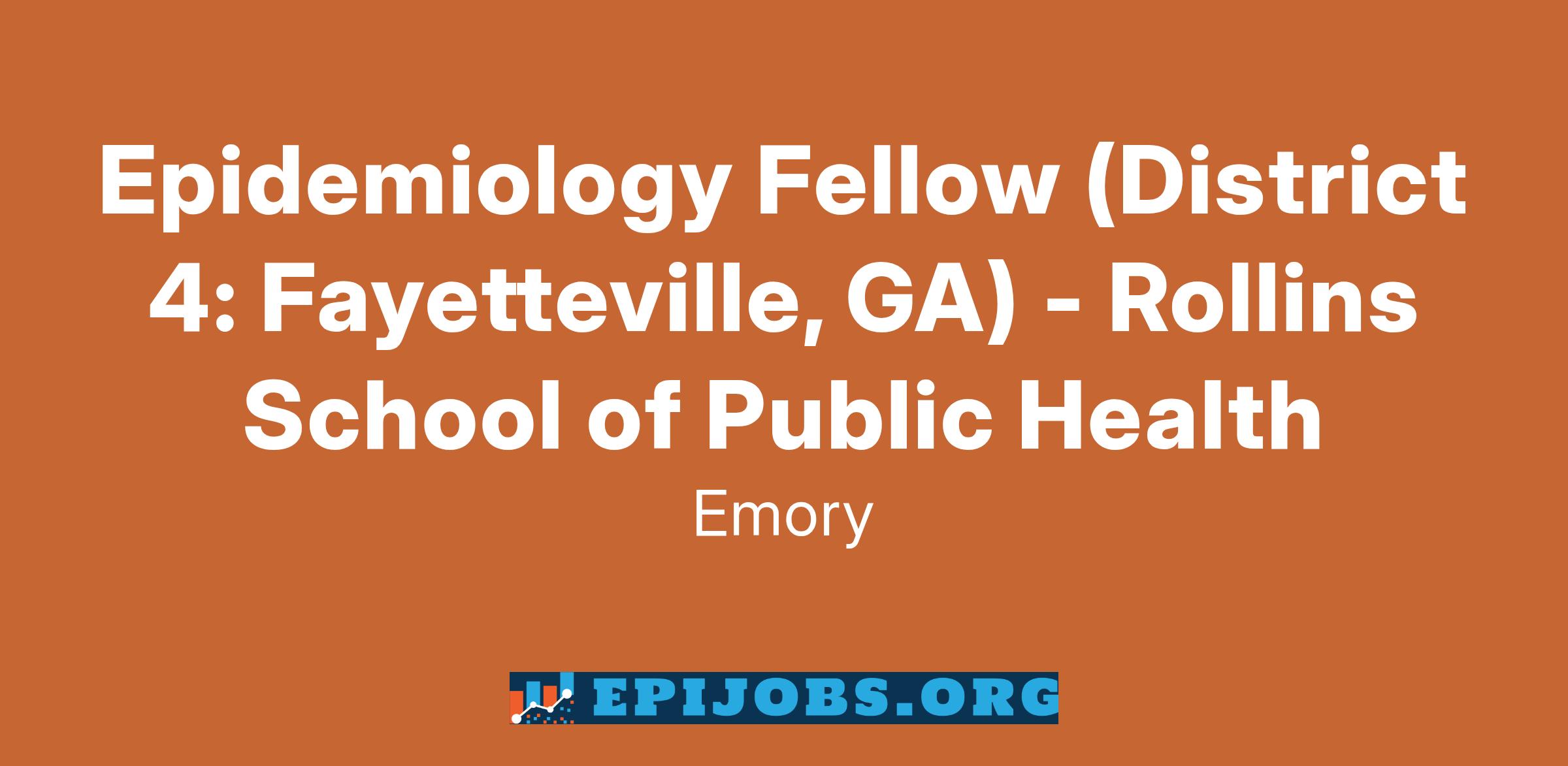 Hired into the Rollins Epidemiology Fellows Program, fellows serve as early-career MPH-level epidemiologists for a two-year term within one of Georgia’s 18 local health districts or at the Georgia Department of Public Health. This position is not located at Emory, but rather at District 4 in Fayetteville, GA.