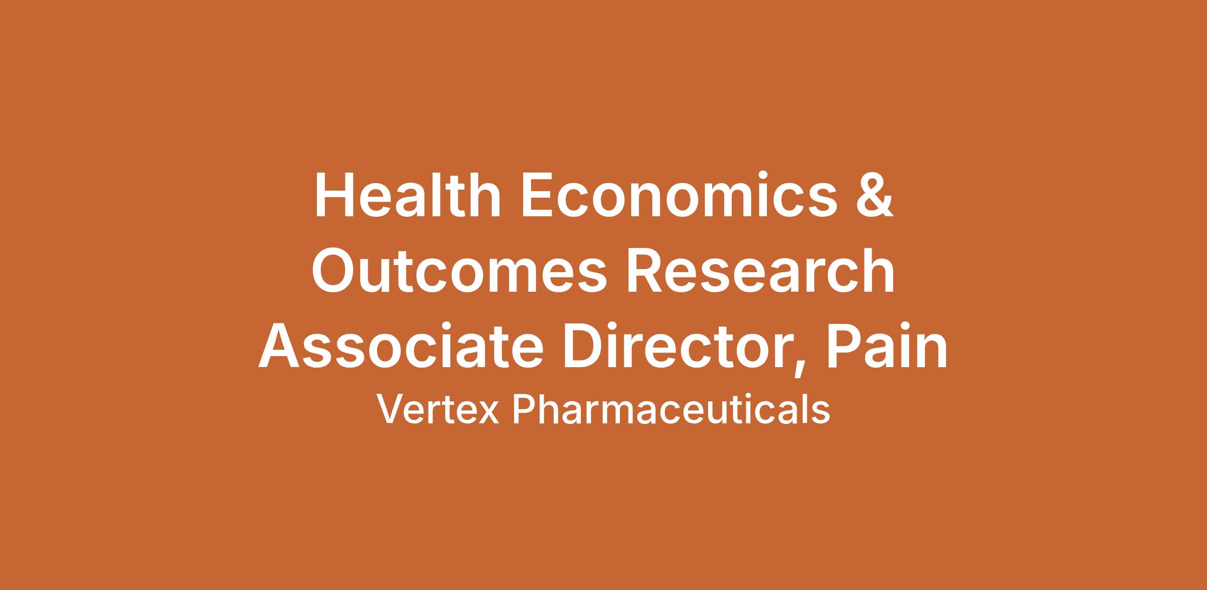 The Health Economics & Outcomes Research Associate Director will participate in leading the development and execution of Health economics and outcomes research studies in support of Vertex's products. This position reports to the Director, HEOR Pain.