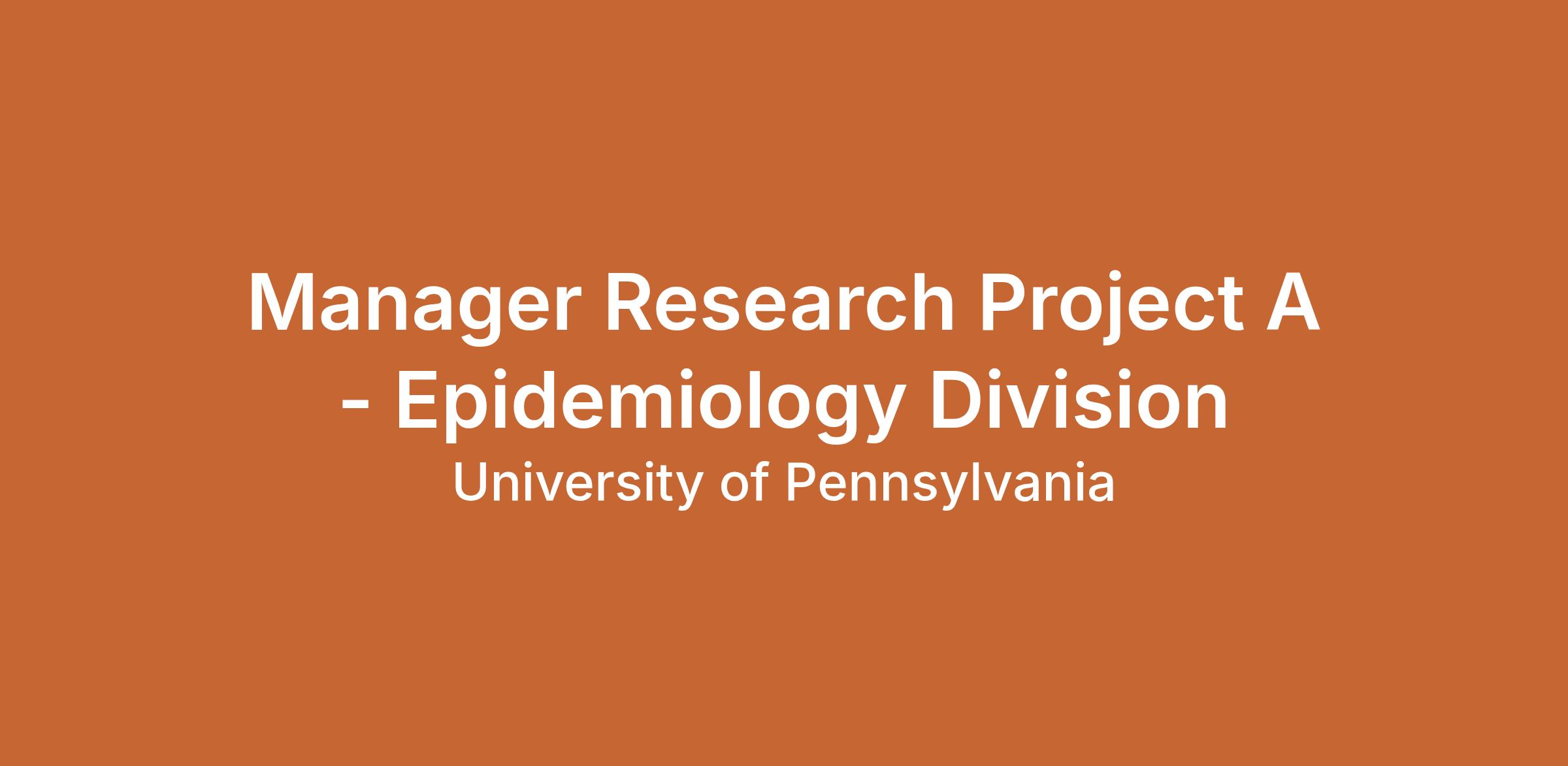 Manager Research Project A - Epidemiology DivisionJob Profile Title