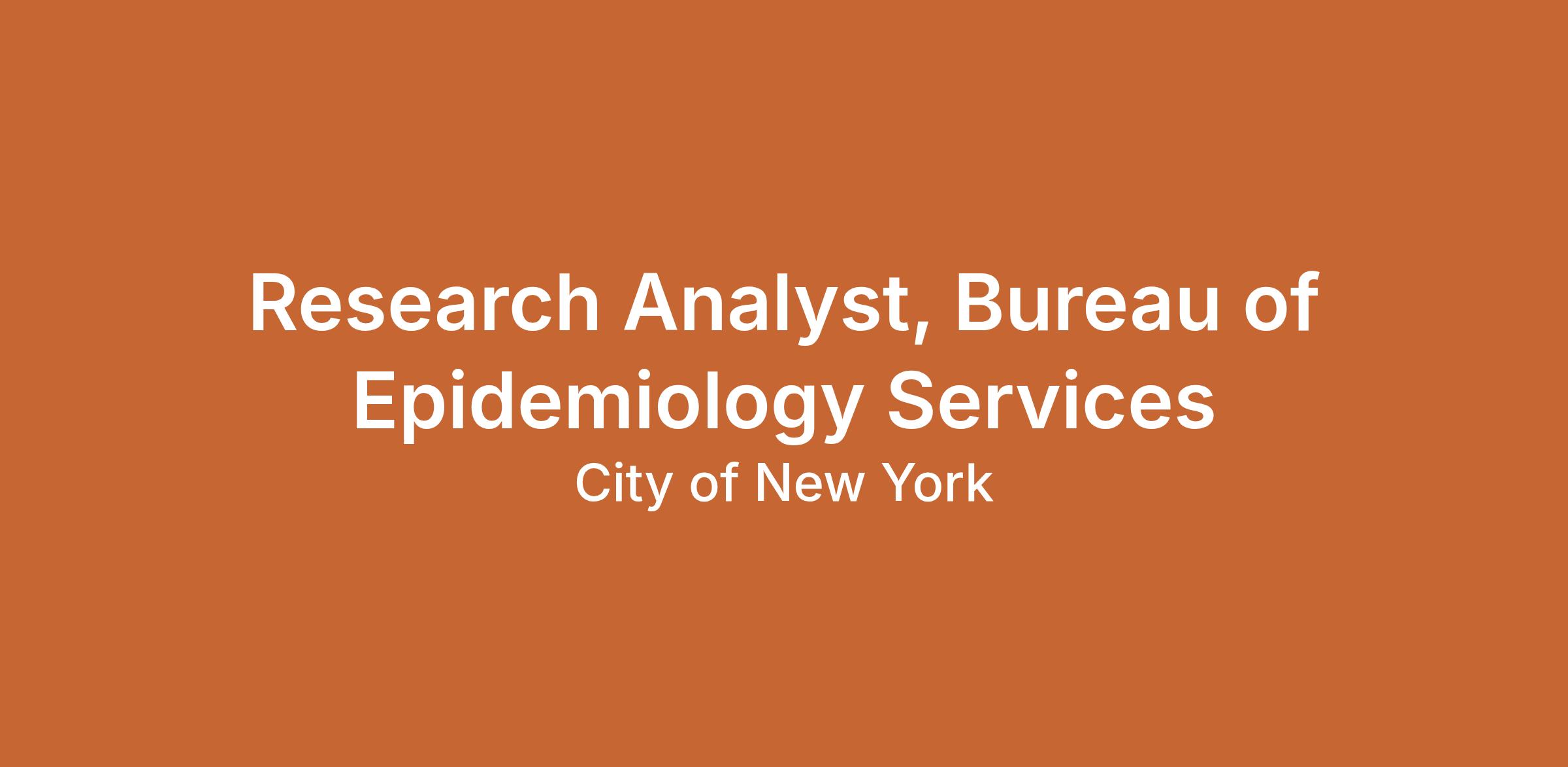 The Bureau of Epidemiology Services (BES) collects, analyzes and communicates data to monitor and improve the health of New Yorkers. BES provides statistical and analytic support for public health surveillance, epidemiologic research, and program evaluations at DOHMH. It also promotes strengthening internal capacity for research and evaluation through consultation and regular trainings for DOHMH staff. BES plays a pivotal role for initiating and performing inter and intra agency collaboration projects, including acquiring data, developing study designs and methodologies, analyzing data, and disseminating findings.
