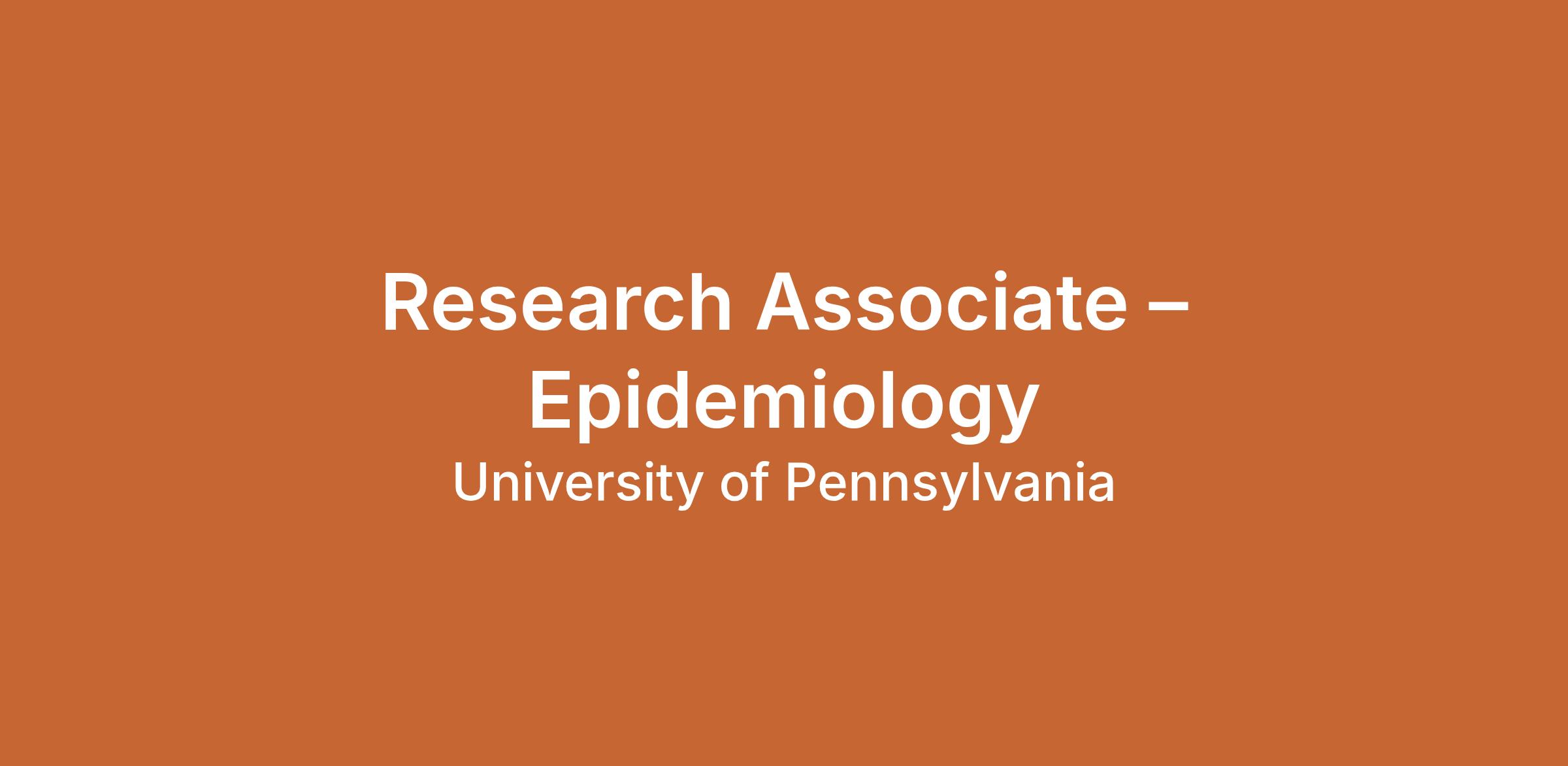 The Department of Biostatistics and Epidemiology at the Perelman School of Medicine at the University of Pennsylvania seeks candidates for several Research Associate positions in the Academic Support Staff. This appointment will be initially for one (1) year and continuation during that time period and renewal are based on satisfactory performance and availability of funding (limited to three (3) years). Expertise is required in the specific area of longitudinal causal inference methods and/or the design, evaluation, and application of research methods, as well as a specific area of epidemiology, (bio)statistics, or a related field of quantitative or computational science. Applicants must have at least one year of postdoctoral experience. Applicants must have a Ph.D. or equivalent degree.