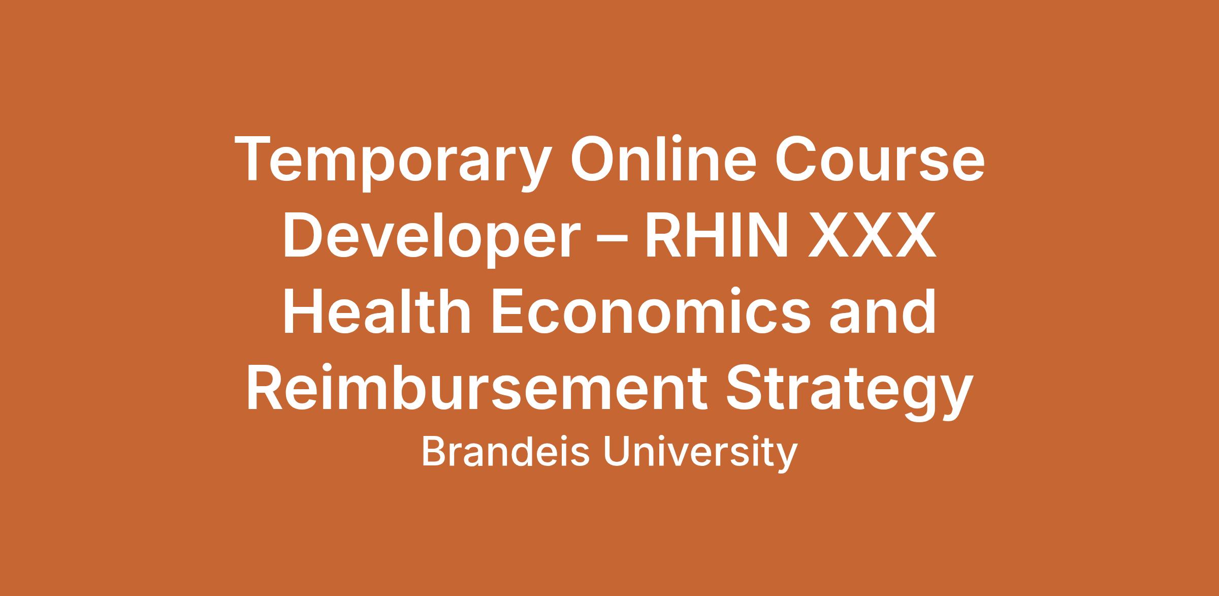 Brandeis University’s Rabb School of Continuing Studies is seeking a skilled online course developer to design and build a new three credit asynchronous online course titled: RHIN XXX Health Economics and Reimbursement Strategy.